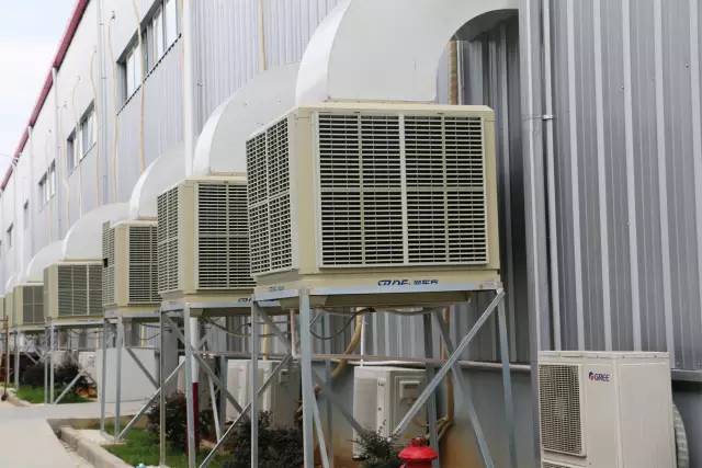 這批環(huán)??照{(diào)共20臺,當(dāng)室外溫度在35℃以上,空氣濕度為65%-80%以上時,環(huán)??照{(diào)就會進行送風(fēng),出風(fēng)口溫度比室外溫度低4-10℃,散射降溫面積1平方米左右,經(jīng)環(huán)??照{(diào)過濾降溫后的清新涼風(fēng)將源源不斷地送入車間,同時將車間內(nèi)的高溫悶熱的熱空氣從門窗擠壓到室外。